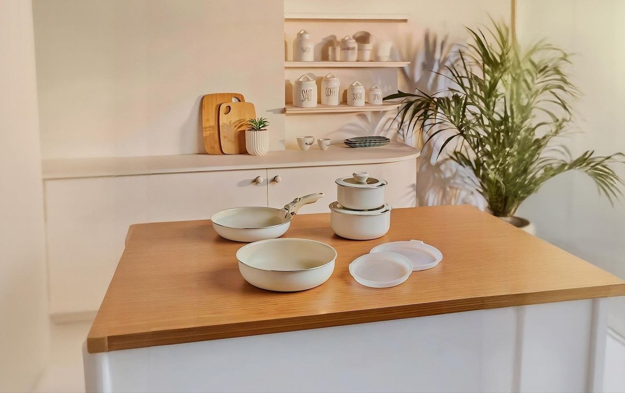 Karaca x Refika Swiss Crystal Almond Cream Easy Clip 9 Parça Qazan Wok və Tava Dəsti