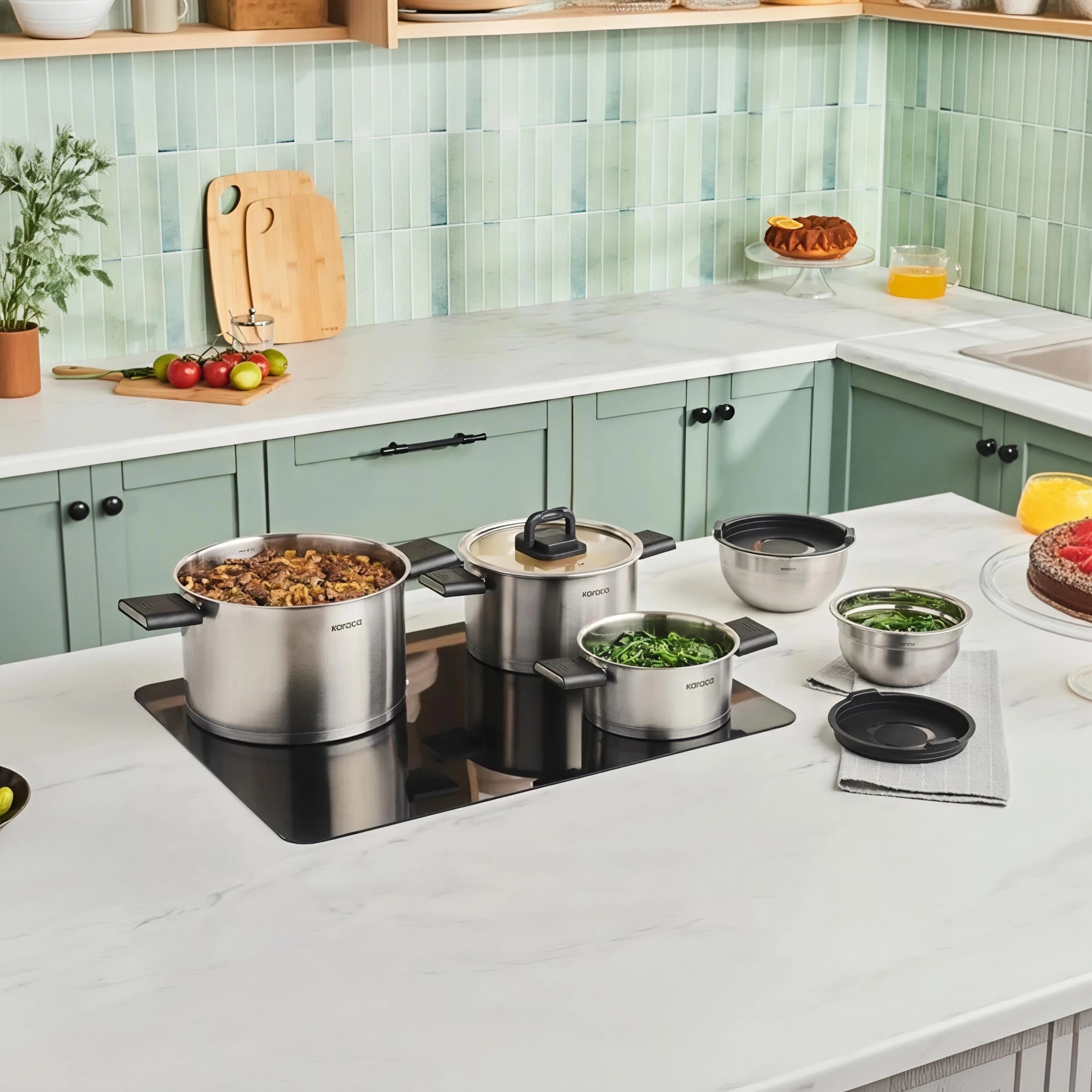 Karaca Aşiyan Qatlanabilən Qulplu 10 Parça Polad Qazan Dəsti